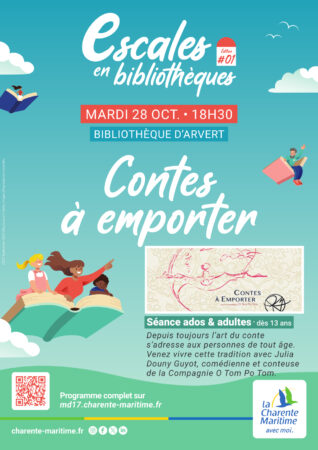 Dans le cadre du festival “Escales en bibliothèques”, initié par le Département de la Charente-Maritime, la Bibliothèque municipale d’Arvert vous propose deux rendez-vous culturels placés sous le signe de l’imaginaire, du partage et de la découverte.